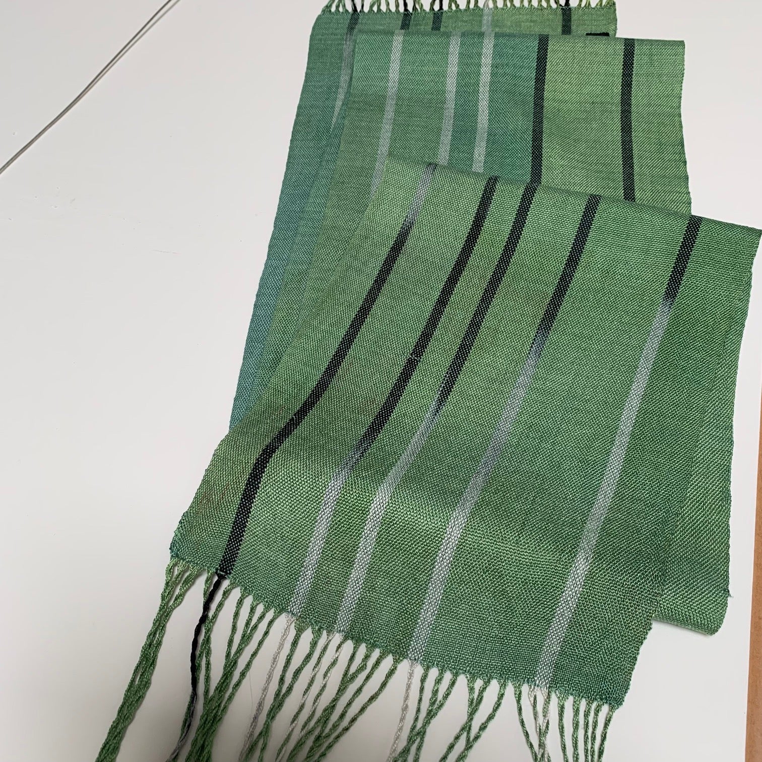 Fine silk scarf hand dyed and handwoven by Helen Wilder. This scarf was inspired by a hedge of bamboo. It is very light and ideal for a summer evening. Size...